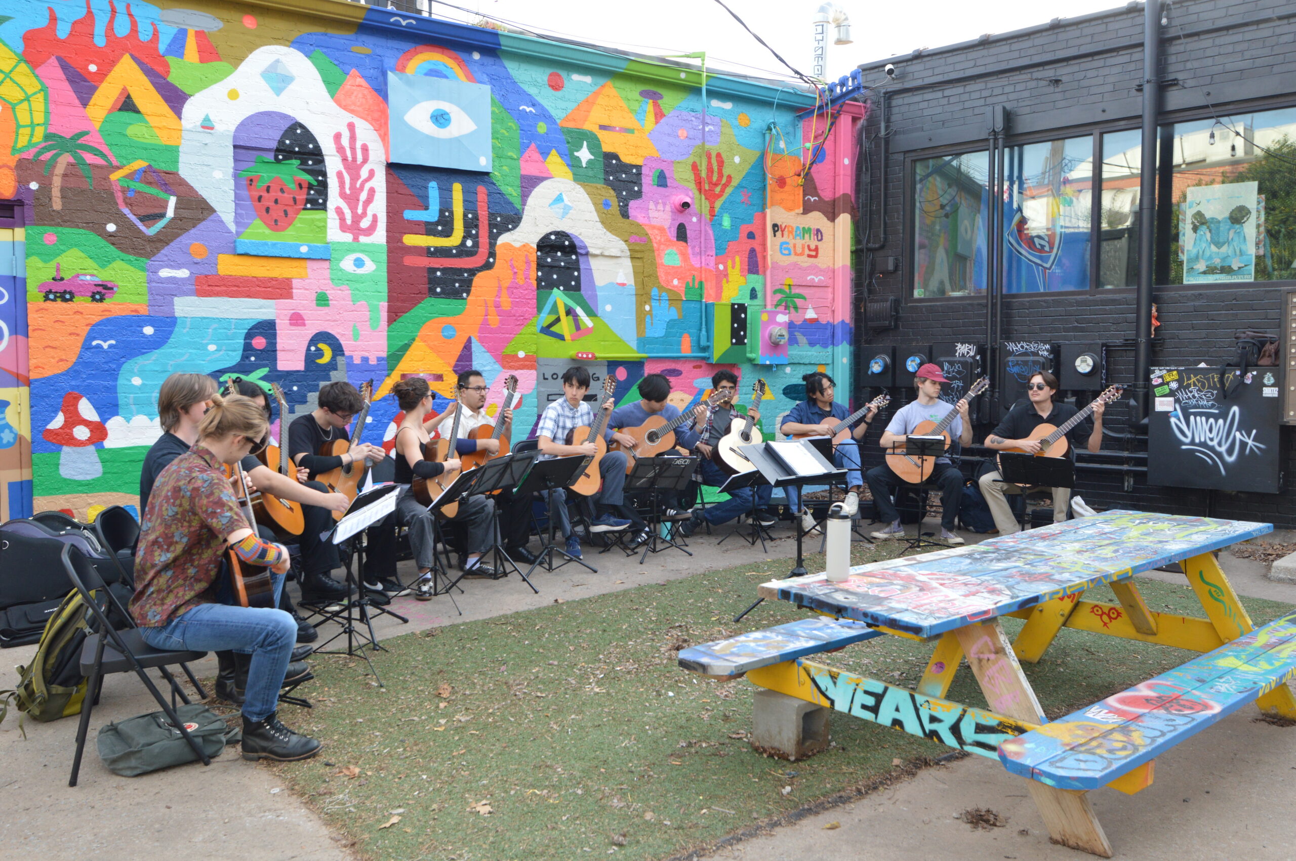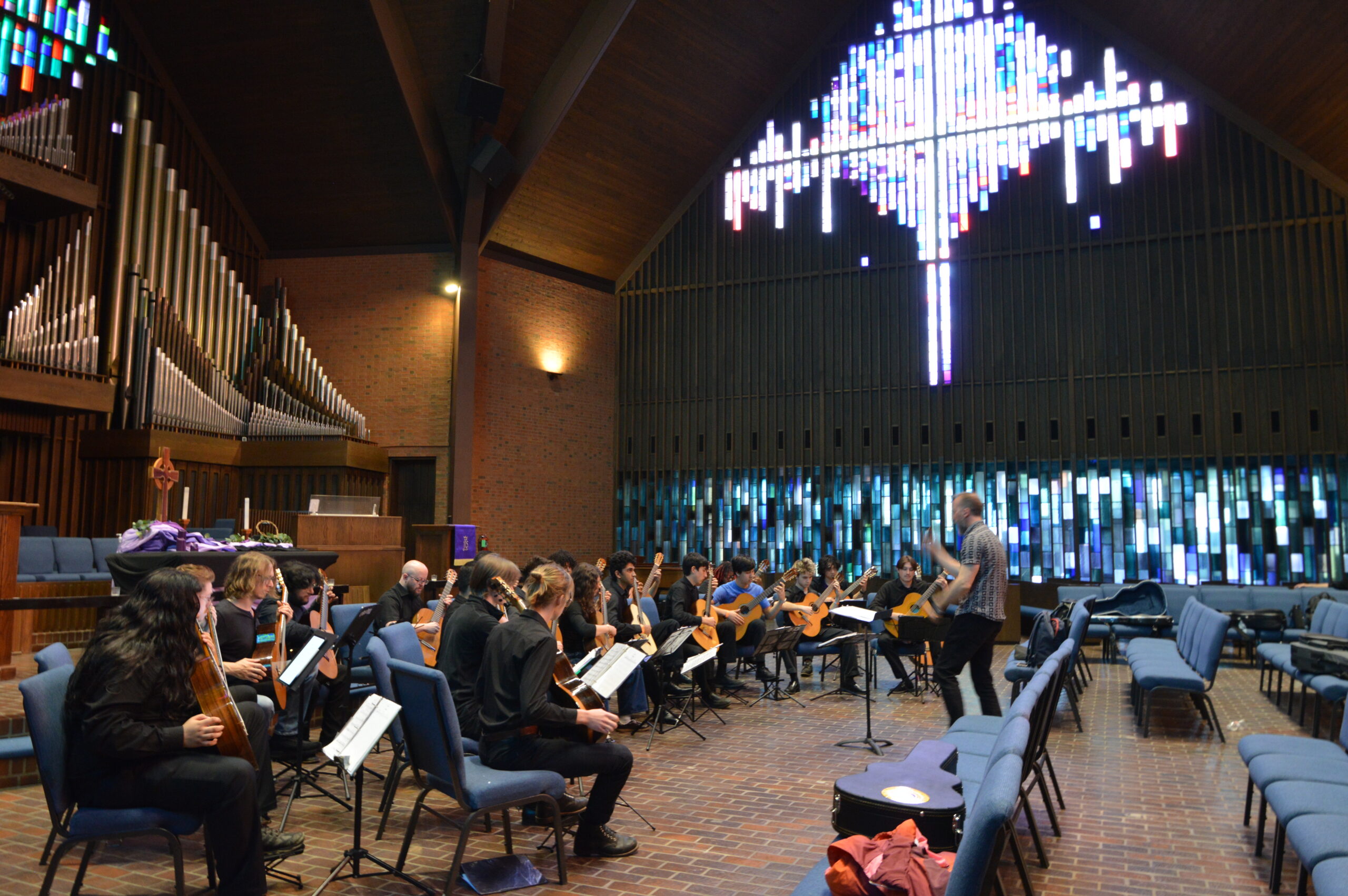 Later that evening we connected with the OkCU guitar studio and Matt Denman where we played at the OCU Smith Chapel. The OCU studio collaborated with ACGYO on Joe’s piece, Les Deux Jumeaux. We shared the stage and filled the room with love and art.