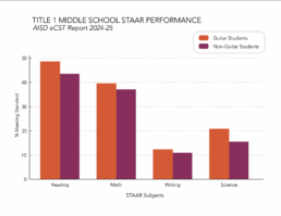 Guitar students outperformed their non-guitar peers in every STAAR-tested subject where data was available: