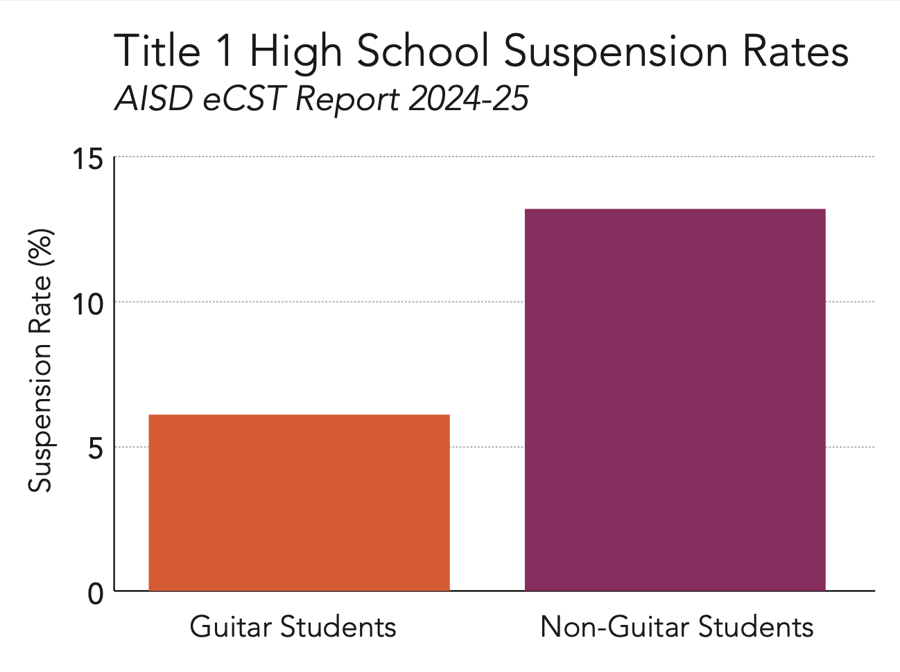 Guitar students also had less than half the suspension rate of their peers — 6.12% compared to 13.19%.